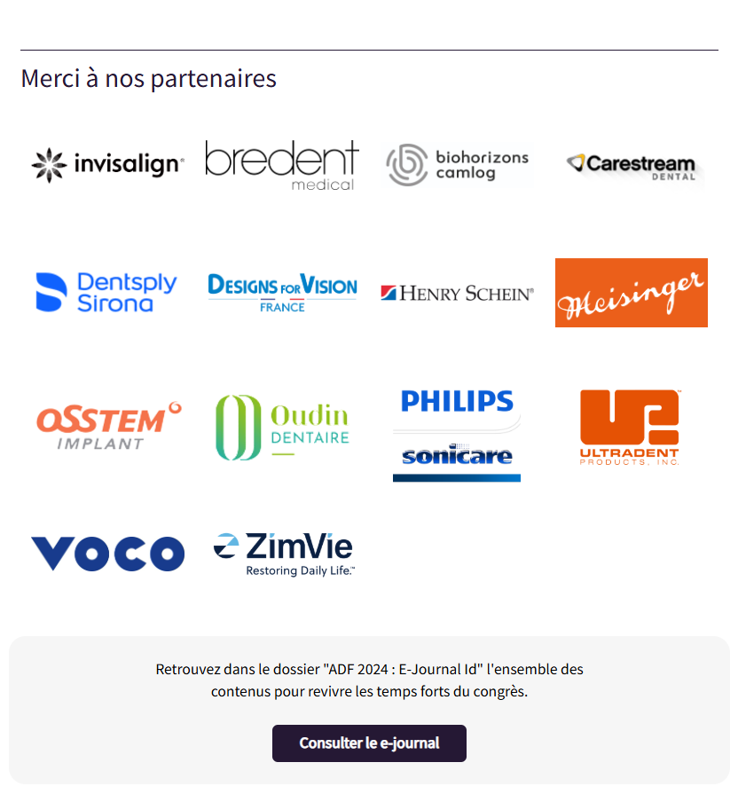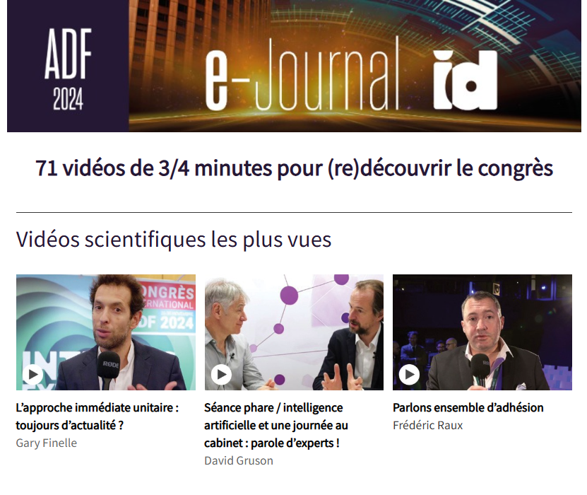 Temps fort de l'ADF 2024comchirurgiensdent5 déc. 20241 min de lectureVous pouvez retrouver les temps forts de l'ADF 2024 sur le site Information-Dentaire.fr et par ce lien : ADF 2024